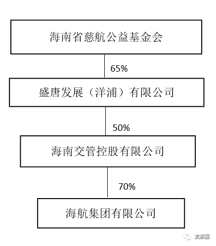 第一财经记者查阅公开披露的相关资料发现,目前海南交管控股有限公司持有海航集团70%股权,为公司的控股股东,而海南省慈航公益基金会(下称“慈航基金会”)通过控股盛唐发展(洋浦)有限公司65%的股权,(后者持有海南交管控股有限公司50%的股份),间接控制海航集团22.75%的股权。