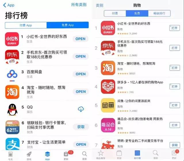 6 月 6 日当天小红书在苹果 App Store 购物类下载排名第一,现在在免费总榜单排名第一了;