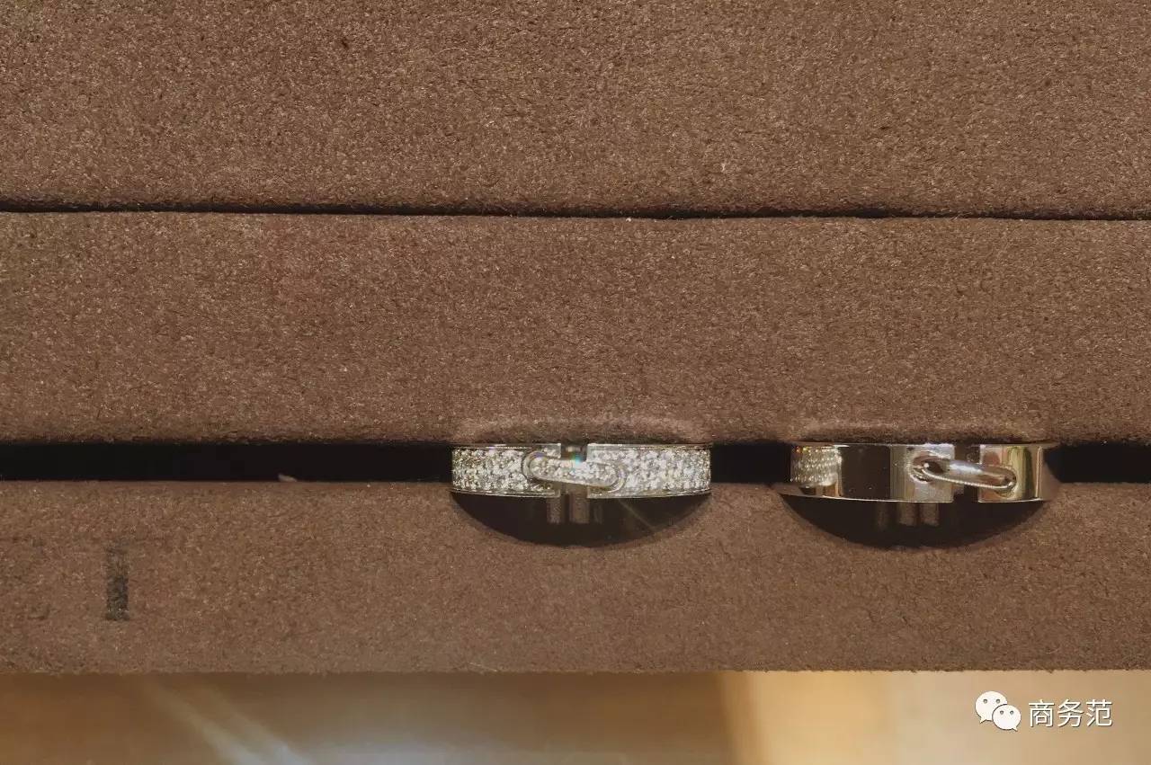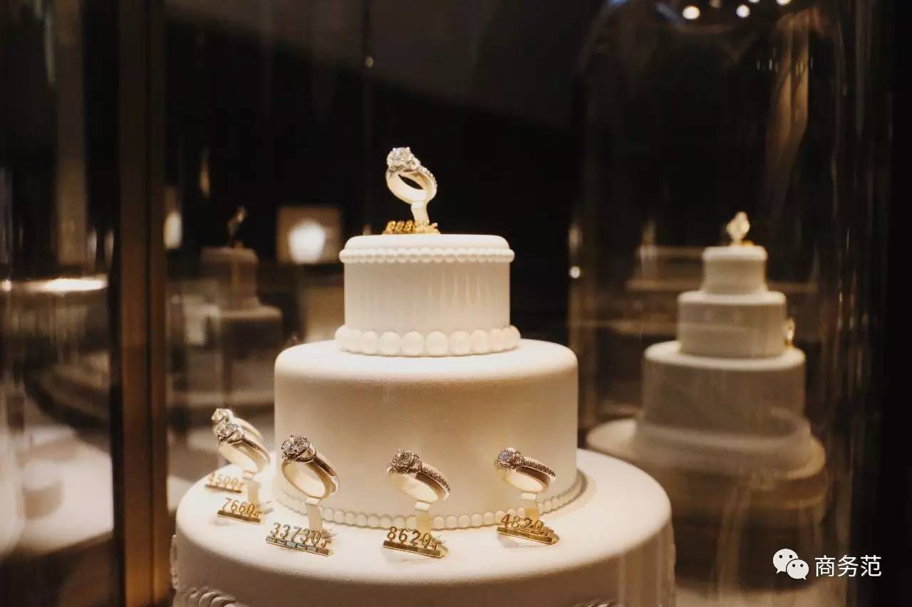 在这家店铺内,盛放钻戒们的托盘很多都是“蛋糕形状”的设计,婚礼现场的气氛呼之欲出,站在这里看着这些耀眼的钻石,怎么能不心动呢?
