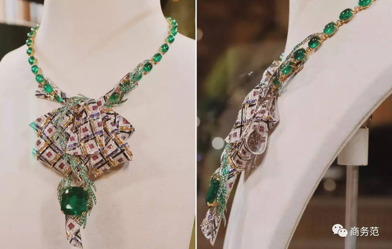 英伦田园高定系列,从布景就将Chaumet经典的蝴蝶结元素突出出来,而绿色也是这个系列高珠的主色调。