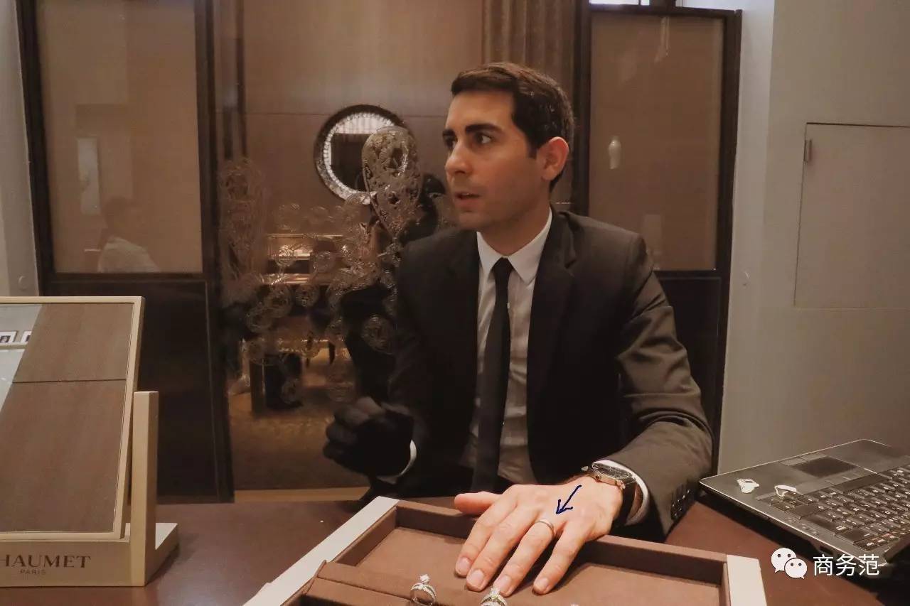 在芳登广场的旗舰店,给范主细心介绍款式的帅气导购,自己手上就戴了一只Classics系列的铂金婚戒~