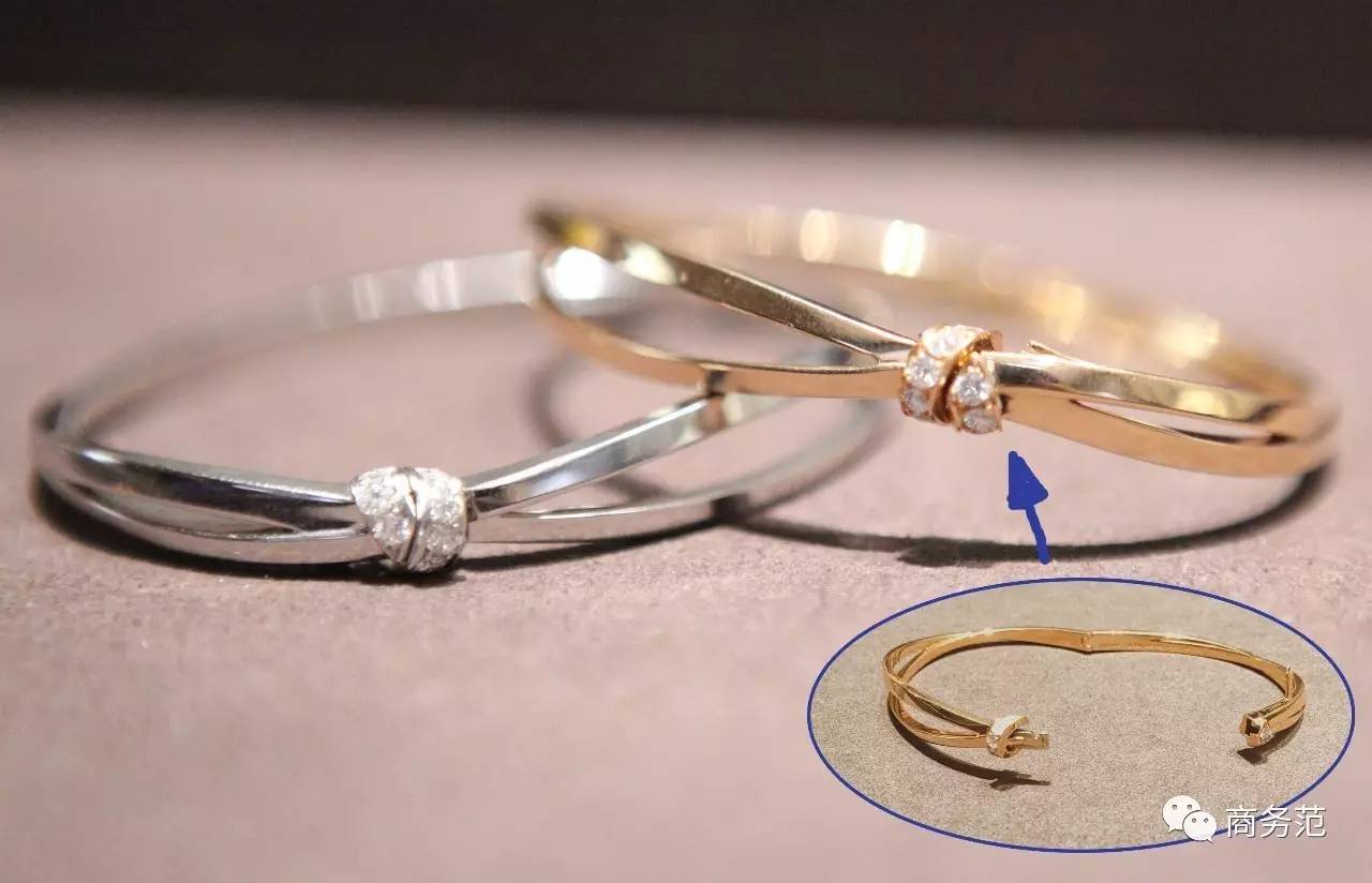 刘亦菲的这只是18K玫瑰金的镶钻款,隐藏暗扣位于“缘分”之结内侧,椭圆形的手镯形状在设计时就考虑到人体工程学原理,佩戴起来非常舒适。最重要的是Chaumet珠宝工艺能够将金属材质打造出缎带的轻盈感,这一点很厉害~