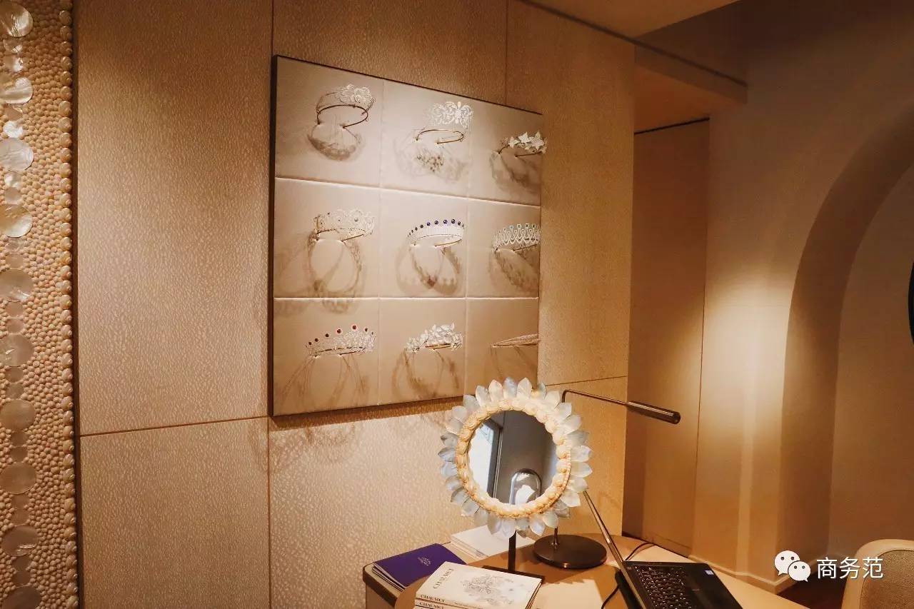 还有摆放着冠冕模型的皇冠墙~客人都可以在这里尝试适合自己的冠冕款式~Chaumet的每个镜子都是有贝母装饰的圆形镜子,精致极了,范主每次看到它心情都特别美丽~