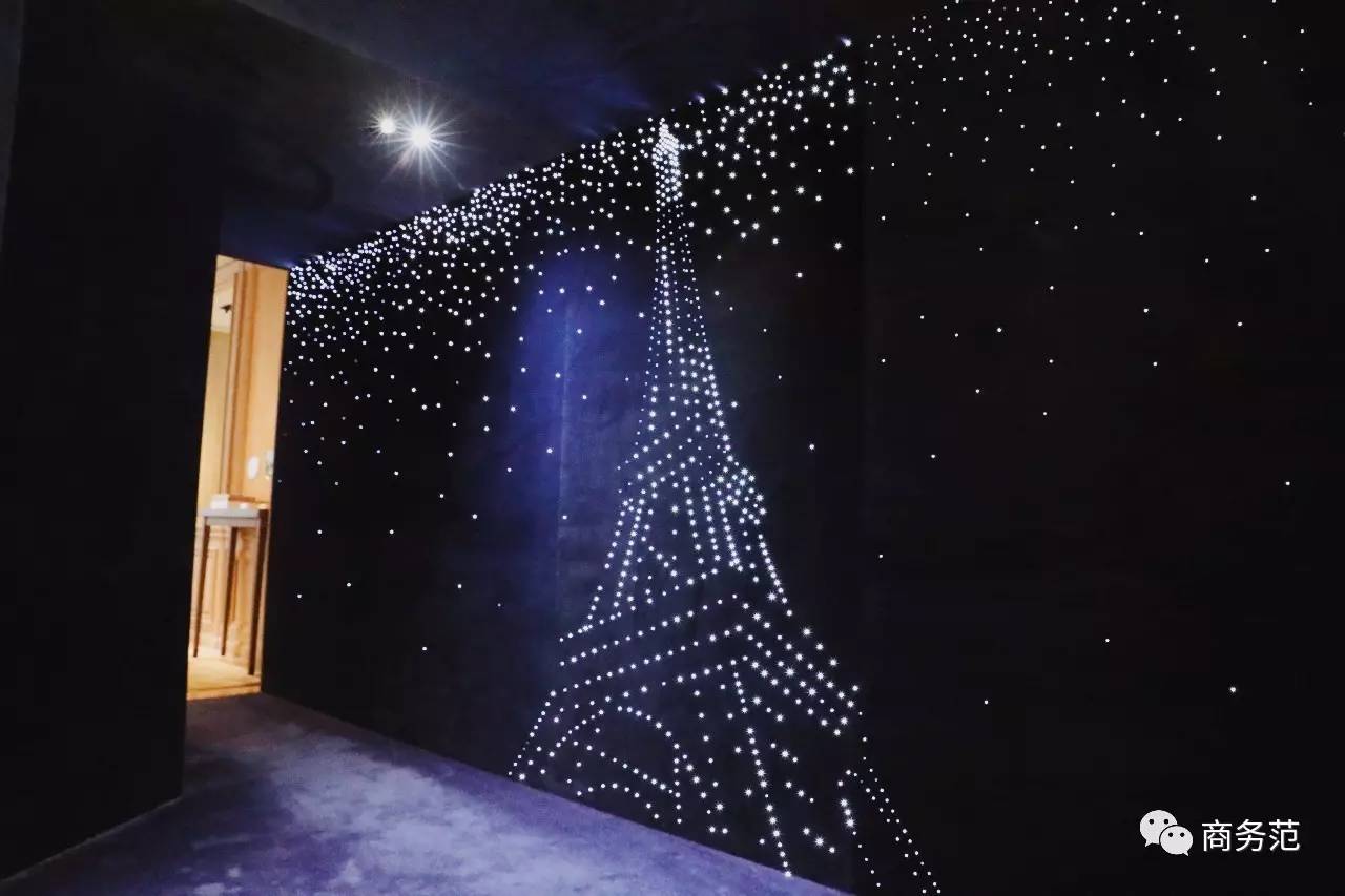 一层的小走廊,还在墙面上设计了法国标志性建筑La Tour Eiffel的星空图案,现场看下来浪漫极了~