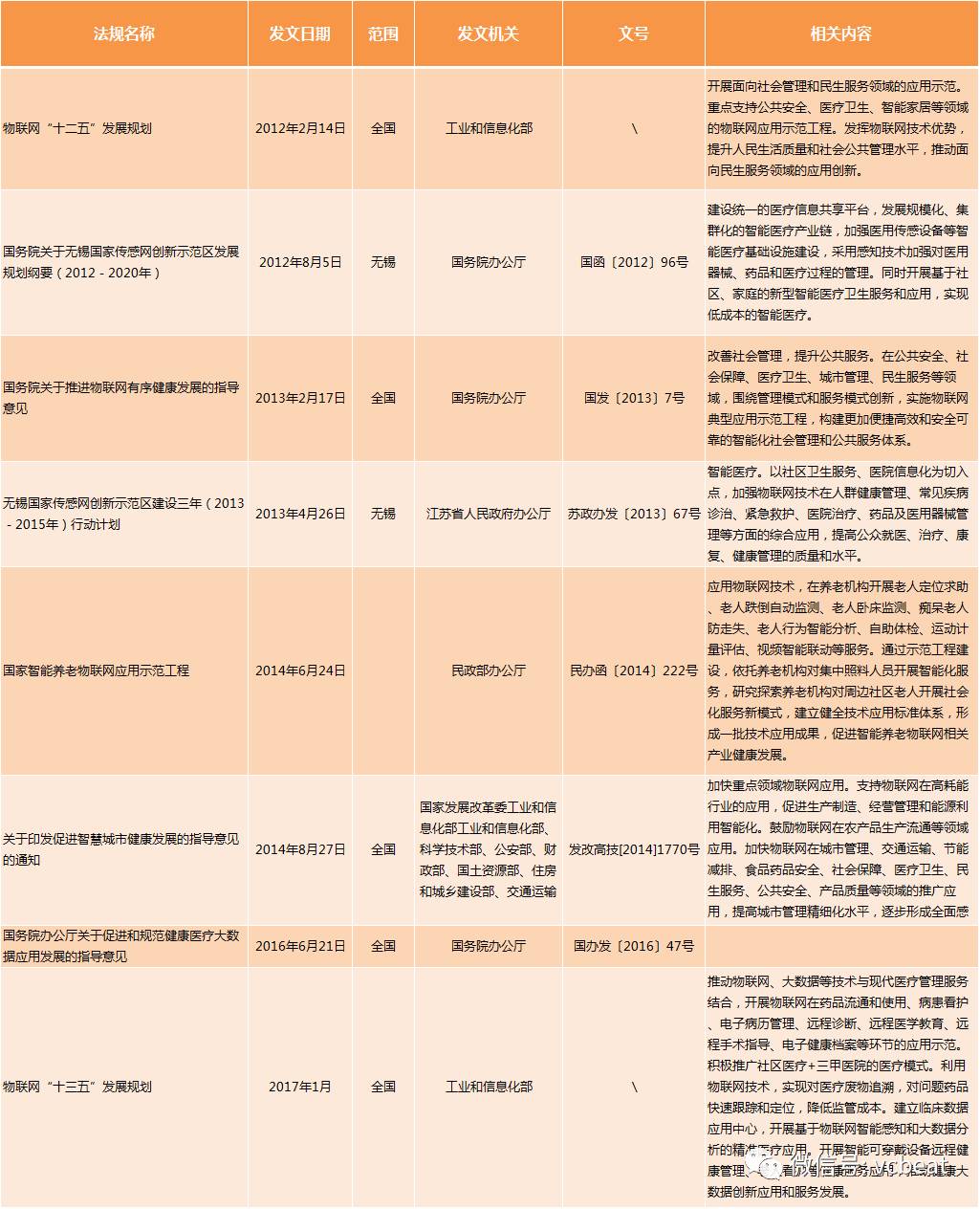 2012年-2017年国家颁布的和医疗相关的物联网政策