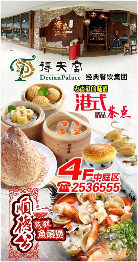 得天宫·香江岁月老港味主营港式茶点,美食世家,创始人陈氏祖籍广东中山石岐,家传茶点厨艺精湛,秉承厨艺理念——厨艺虽繁必不可省人工,原料虽贵必不敢减物力,食材好!食才好!由此,形成了得天独厚的养生饮食文化。公司以茶点和南粤风味特色菜为主,特色茶点有:海皇宫虾饺皇、法兰西疏乎哩、流连湖畔天鹅酥、澳门葱香饼、创意高筒焗葡挞、特色酥皮焗奶、鲜虾紫米肠;主打南粤风味菜有:顺德公海鲜鱼头煲、湘味明炉一品鲜、酱香石锅三杯鸡、顺德招牌火焰鹅、香江五味猪手、窝蛋牛肉西洋菜、山胡椒惹味牛蛙等。食不厌精,脍不厌细,更多美食尽在得天宫·香江岁月老港味。