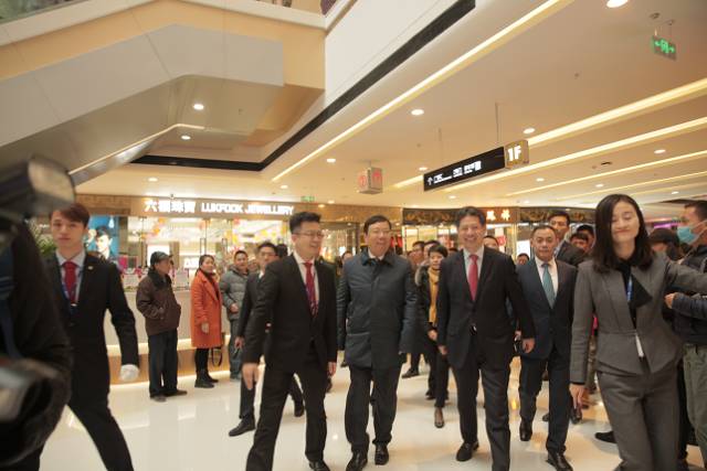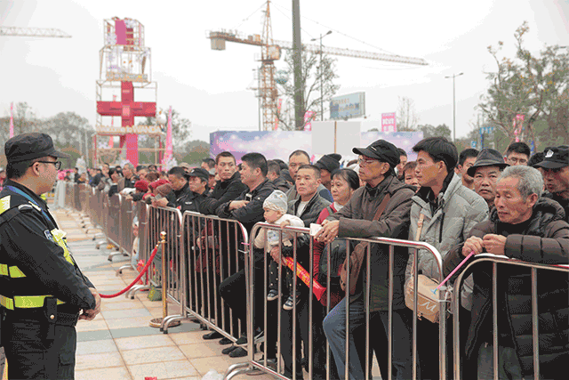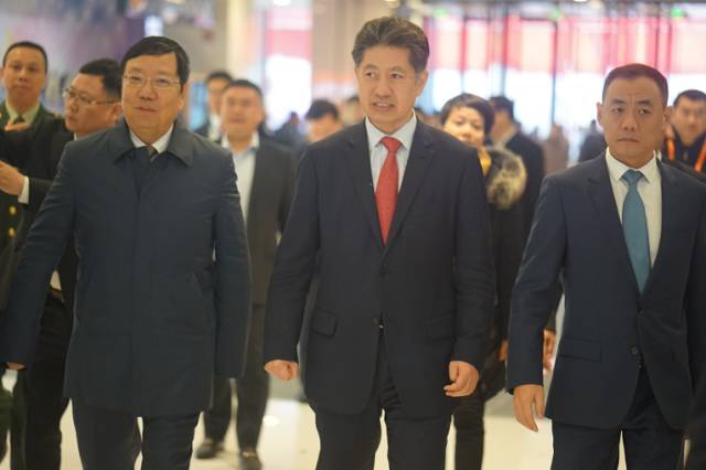 伴随着礼花,领导和嘉宾率领大家进入场内