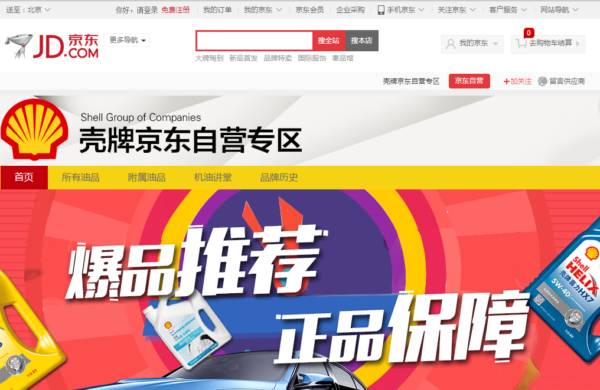 为此,我们首先致电壳牌客服电话400-010-3208了解情况,一位工作人员表示,“我们(壳牌)和京东没有合作”,且在京东商城没有专区。
