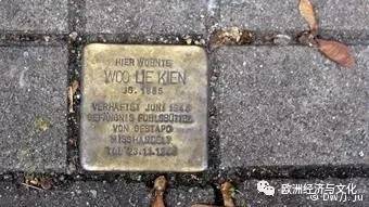 图片说明:纪念遭受盖世太保虐待而亡的中国人 Woo Lie Kien的金属石块