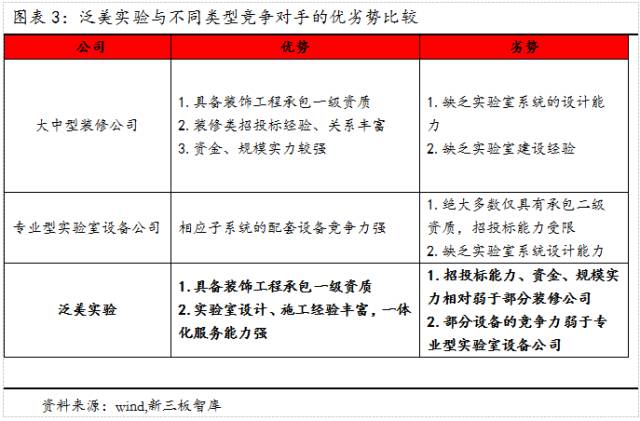 综上,如业主对实验室系统质量要求相对不高,大中型装修公司的中标能力要强于泛美实验。反之,对于实验室系统质量控制要求较高的项目,泛美实验有更大可能获得订单。