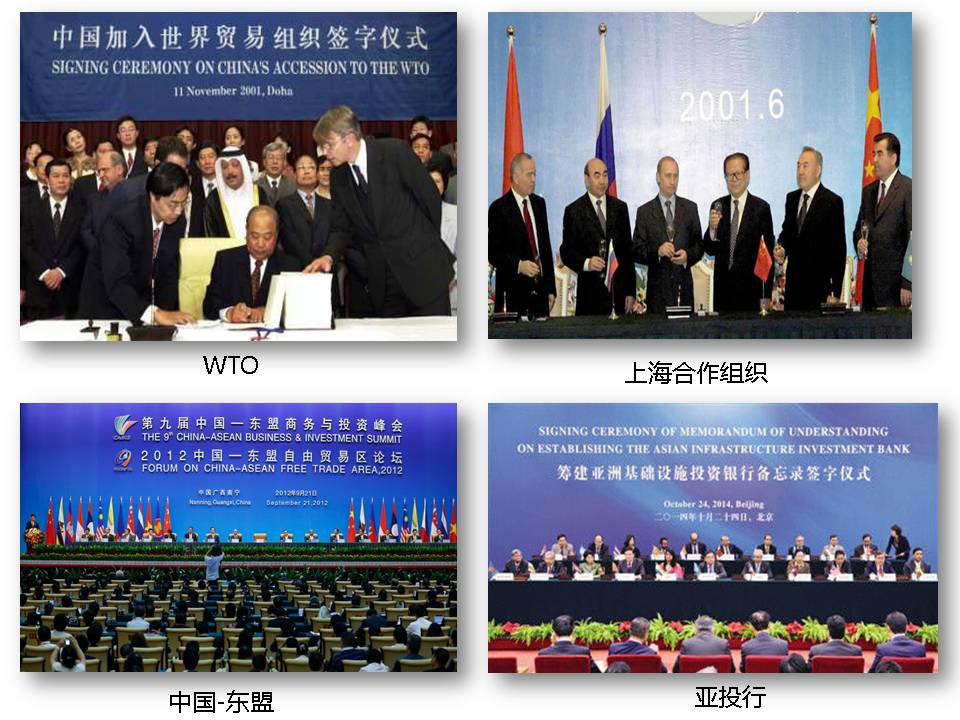 2001年中国正式加入WTO组织,进入了全球化产业链分工,经过10多年发展即实现了制造业大国,工业产值超过了美国和日本总和!通过上海合作组织,中国东盟组织,逐步为一带一路开展做好了政治和经济上的准备。
