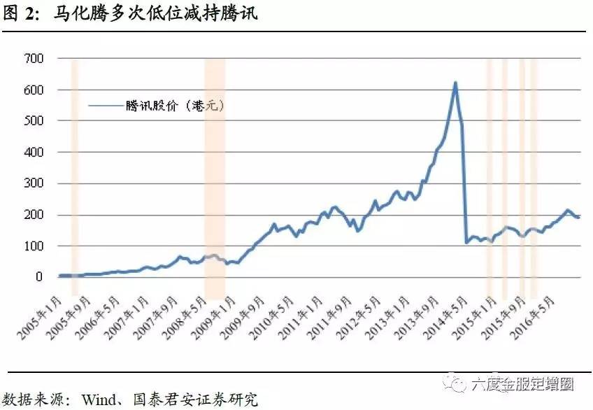 案例1:内部人能预测股价?看马化腾多次低位减持腾讯。