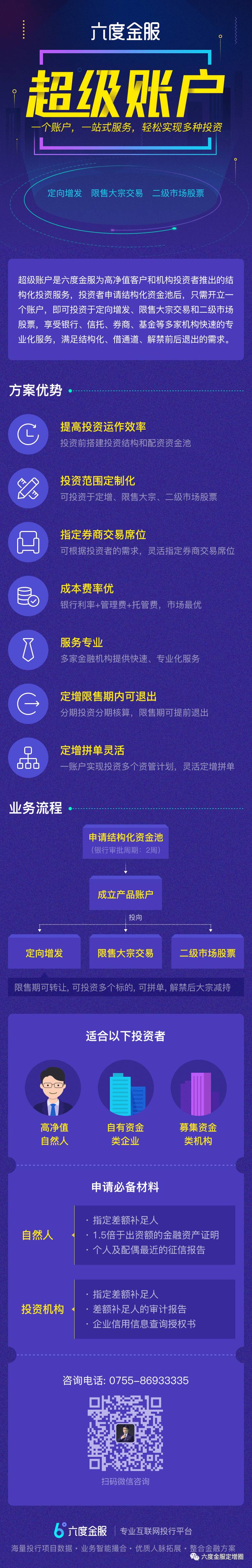 六度金服是专业的互联网投行平台,业务涵盖定向增发、大宗交易、私募可交换债、股票质押、并购重组、大股东增减持、员工持股计划等,为上市公司及其大股东、专业投资机构、信托、银行、基金、券商等,提供投行项目信息查询和资源需求精准对接服务。