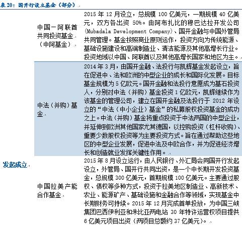 除了提供在服务国民经济发展的中长期贷款以外,国开行以投资的方式提供融资服务。包括通过国开金融、设立基金的方式实现海外投资。
