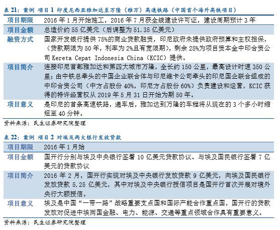 农行根据自身业务特点,在农业、基础设施、能源、制造业等各个领域为“走出去”客户提供全面金融服务,截至2016年上半年已累计办理“走出去”业务650亿美元。建行也在2015年度业绩发布会上透露目前已储备了195个“一带一路”相关项目,信贷需求约2700亿美元。