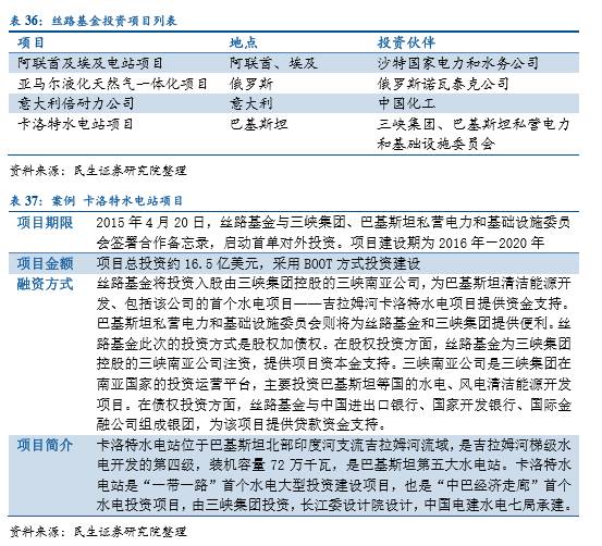 目前,丝路基金参与投资的项目涵盖了丝绸之路经济带上的巴基斯坦、哈萨克斯坦、俄罗斯、阿联酋、埃及、意大利等国家。投资领域包括能源、化工等。