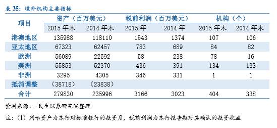 在全球25个国家和地区设立了130多家机构,总行级代理行1491家,覆盖139个国家和地区。2015年完成国际结算1.29万亿美元,增幅9.37%;跨境人民币结算1.84万亿元,增幅26.15%。