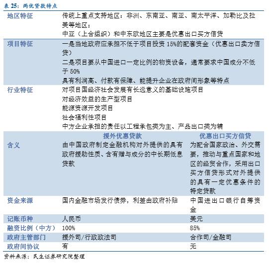 两优贷款是中国政府为了促进双方互利合作、向项目国(发展中国家)政府提供的具有优惠性质的资金安排,包括援外优惠贷款(Government Concessional Loan),和优惠出口买方信贷(Preferential Buyer’s Credit)。可给予“两优”支持的国家必须是与中国正式建交、双边关系良好的发展中国家。未来,进出口银行的资本金会增加,援外资金投入将向“一带一路”国家倾斜。