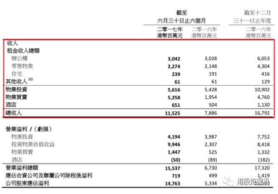 上半年, 物业买卖录得14.47亿港元营 业溢利 , 而2016年上半年的营业溢利则为5.25亿港元。上半年溢利主要来自香港殷然项目顺利推售。
