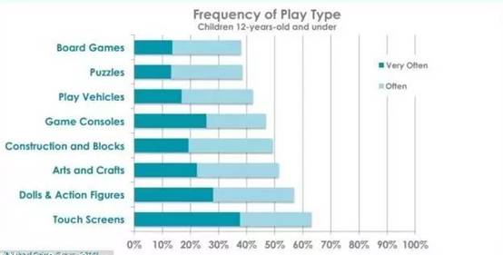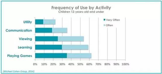 据咨询机构迈克·科亨集团发布的一项调查结果显示,在受众比较广泛的游戏方式中,有超过60%的孩子经常使用触摸屏设备玩游戏,其中38%的孩子对触摸屏设备使用非常频繁。