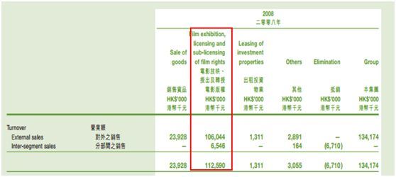其中电影发行及放映、授出及转授电影版权仍是收入大头,2017年上半年,寰宇的电影分部收益为1.39亿港元,占总收益的59.92%;但2008年的财报中,电影分部收益占总收益的83.91%。十年间,寰宇对电影业务的态度转变可见一斑。