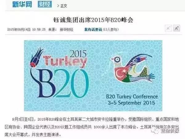 2015年9月3日-5日,钰诚集团出席2015年B20峰会。