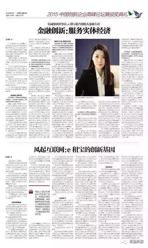 2015年9月21日,《经济观察报》整版报道e租宝的金融创新与实践。