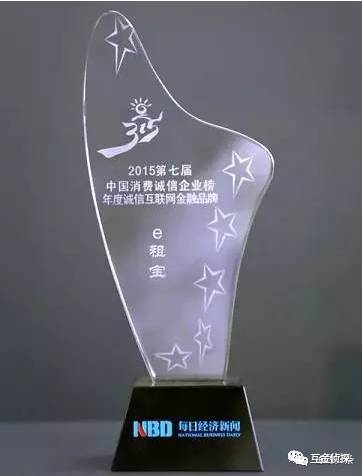 2015年3月,e租宝当选每日经济新闻“新常态 新消费 新服务——互联网大潮下的新增长极”全国性调查“年度诚信互联网金融品牌”。