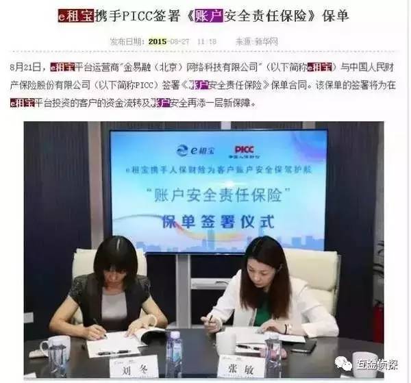 2015年8月24日,e租宝与PICC签订账户安全责任险。