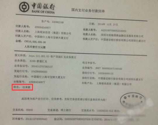 不过在客服晒出的银来集团2500万元汇款回单上面,其附言中标明,该款项为“往来款”。往来款是什么?往来款是企业因发生供销产品、提供或接受劳务而形成的债权、债务关系的资金数额。