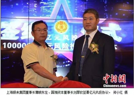上面这张图是一篇新闻宣传稿中的,是当年国湘金融宣称拿到了亿元风投的发布会上拍的,而投资方中就有银来集团。
