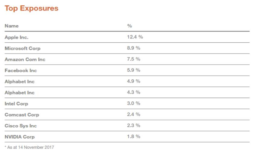 以 Beta Nasdaq ETF (ASX: NDQ)为例,该基金超过 60%的资金投入到了苹果、微软、Amazon、Facebook、Alphabet、英特尔等美国 IT 行业巨头。以这些巨头近几年的表现来看,投资类似Beta Nasdaq ETF 的产品是间接投资美股的便捷方式。