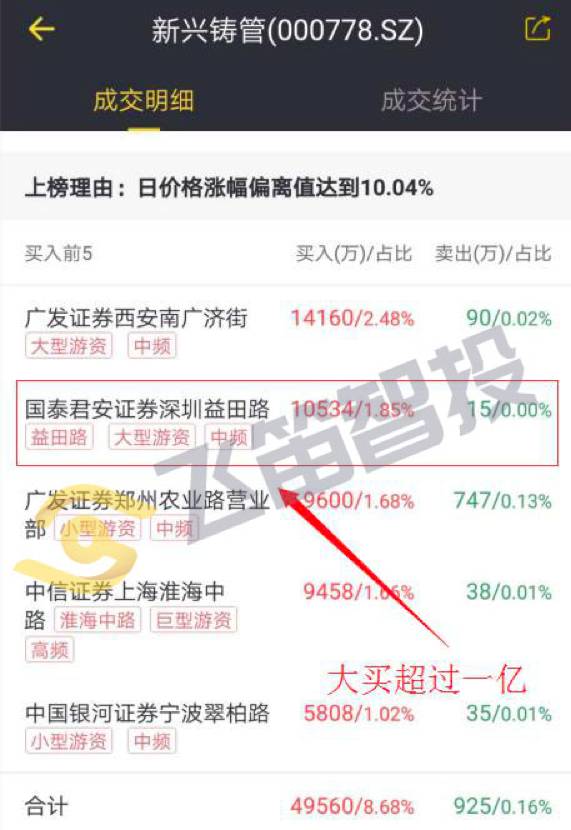 研究龙虎榜游资是既能够提升自身格局和买卖技巧,又能够了解营业部操作痕迹的一种手段,后期飞笛智投APP将持续为用户提供类似文章,增强学习能力。更多内容,请参见专题《龙虎榜系列教学,献给炒股新手们》。