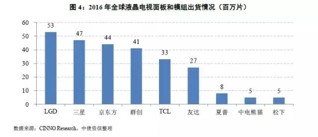从液晶面板的发展历史格局来看,在21世纪以前,液晶面板由日本企业垄断,1990年日本TFT液晶面板占据了全球市场90%的份额,后来随着日本经济的下滑,企业投资热度大减,在1995~1996年液晶产业的第二次衰退周期里,韩国企业大规模进入液晶面板行业,比如三星便在日本设立了一个研发机构,利用产业衰退期,雇佣失业的日本工程师来积累研发能力,韩国企业用不到10年时间便将日本企业挤下了世界第一的宝座。1997年底亚洲金融危机后,液晶面板市场急剧收缩,日本企业的投资基本处于搁浅状态,这一轮衰退又引来了新的入场者——台湾企业(比如奇美)。然而,台湾地区的液晶面板产业尽管规模很大(仅次于韩国),但在2008年全球金融危机中却暴露了其致命弱点——台湾不像日本和韩国那样,拥有大量来自本土下游产业的庞大需求作为支撑,在全球需求不振的情况下,日韩企业均取消了订单改为自供,台湾面板企业开工率骤降,几乎濒临死亡线。2009年以来,中国的彩电行业正处于扩张期,但日、韩、台企业对中国面板行业均采取禁止投资、哄抬价格等封锁战略,因此2011年以前京东方、中国电子等主要厂商所建的产线均为G6及以下世代线,而液晶面板是国家重点战略扶持产业,近年来发展较为迅速,当中国企业通过跨国并购和自主研发等方式逐步掌握生产技术后,国外厂商也开始放弃封锁战略,大规模在中国建厂。据不完全统计,2016年我国在建/新建/规划的面板投资项目总投资额逾4,000多亿元,全球液晶面板产业正加快向中国转移。按照目前的产能规划来看,未来几年内中国液晶面板出货量将超过韩国成为全球第一。