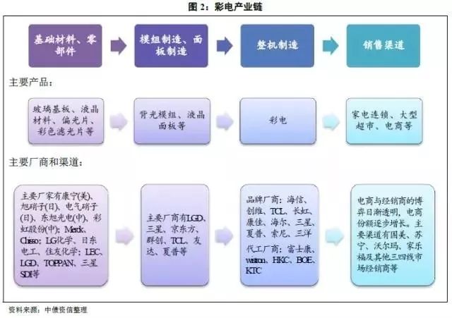 我国彩电制造企业可以分为两类,一是有自主品牌的厂商,主要有海信、创维、TCL、长虹、康佳、海尔、三星、夏普、索尼、三洋等;二是没有自主品牌的厂商[详见附注],包括富士康、兆驰股份、毅昌科技、wistron、HKC、BOE、KTC等。