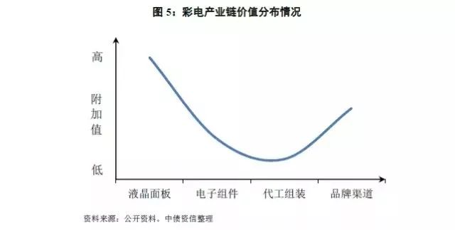 2.黑电产业链中,各部分价值呈现不对称的微笑曲线,液晶面板生产价值增加最快,IC组件和电视代工、组装最低,终端品牌渠道价值介于两者之间。整体看,液晶面板产业链上游的核心材料——玻璃基板享有最高的价值增加,但核心技术仍掌握在少数国外厂商手中,我国的黑电企业多为整机制造厂商,在产业链中的话语权一般。