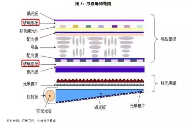彩电产业链较长,涉及子行业众多,主要有玻璃基板、液晶材料、偏光片、彩色滤光片、背光源等。其中,玻璃基板是生产液晶面板最核心的部件,虽然相对于背光模组而言,玻璃基板的成本并不是最高的(玻璃基板约占整个面板成本的15%~20%,背光模组则占30%左右),但是却是生产难度最大、技术含量最高的部分,目前主要被美国和日本的企业垄断,也是我国整个面板产业链中发展相对滞后的环节。