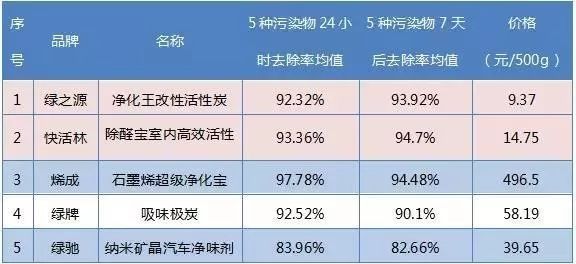 快活林(除醛宝室内高效活性炭吸附剂)、绿之源(净化王改性活性炭),价格便宜,有毒有害污染物去除率高。