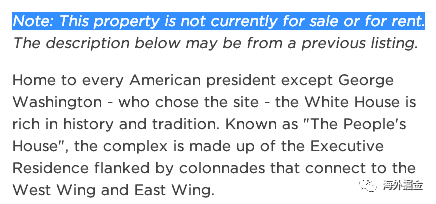 不过啊,这老美真是搞笑,在白宫的简介下面来了这么一句话:该房产目前不能出售或出租!