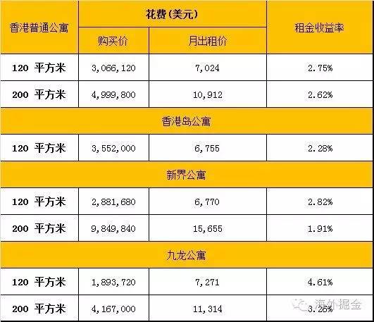 香港投资房产的租金收益率低于正常水平。普遍的租金收益率徘徊于2%到3%之间。这意味着房产所有人依赖房屋租赁来获得利润的想法基本破灭。与此同时,相对租金而言,香港房屋的出租费用并不低。120平方的公寓月租金高达7000美元。众所周知,香港富裕阶层向来会购买房地产实现资产的保值。与此相类似的市场有澳门和新加坡。