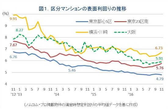 相较于东京,大阪的公寓回报率是更高,为5.91%(上图绿线)。根据东经鉴定公司数据,大阪2017年6月的租金是158.8人民币/平米,相比5月下降了0.5%,但同比去年同期提高了0.5%。而其平均公寓尺寸为59.62平方米,比东京更大。