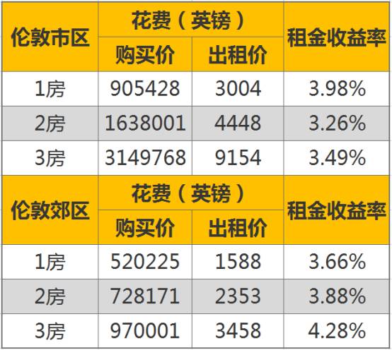 尽管如此,伦敦的租金回报率依然能达到3-4%的水平,作为世界一点城市来说,着实不易。虽然目前伦敦的房价较高,但由于租金同样较高,因此能保证不错的租金回报率水平。以下是各房型的租金回报率,供大家参考。
