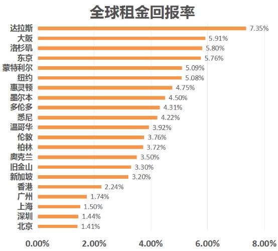 与这些“只租不售”的楼盘比起来,国外大都市的租金回报率又如何呢?