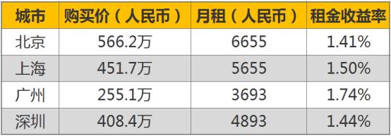 而北上深则都在1.5%左右,按照这个租金回报率,北上深几乎都要66年以上的租金才能收回购买成本。