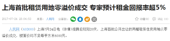 几天前,地产界出了个重磅消息:上海卖出一块“只租不售”的土地,开发商所建房屋只能出租不能卖。