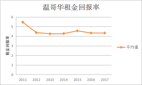 温哥华最新租金回报率为3.92%,略有下降。从过去几年来看,温哥华的租金回报率持续在4%~6%之间。
