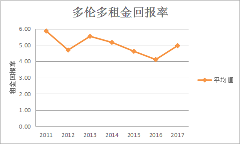 从Statista的分析报告来看,多伦多市中心的回报率比温哥华市中心回报率高出将近1%。由于今年4月的房产冷却政策,使得多伦多目前房价为79.4万加元,连续两个月出现回调。不错的租金水平,也让租金回报率得到保证。