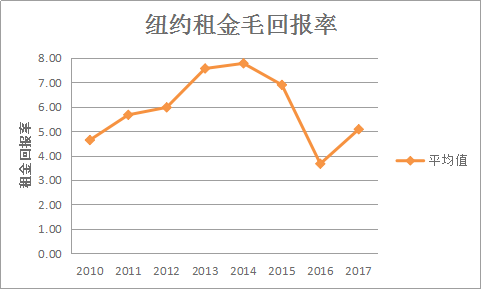 纽约的整体表现不错,租金回报率基本上在4%以上。近期的租金回报率为5.08%,比伦敦表现更好。