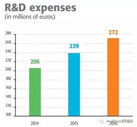 在2016年,投资2.72亿欧元在研发中,占销售额的12.9%。