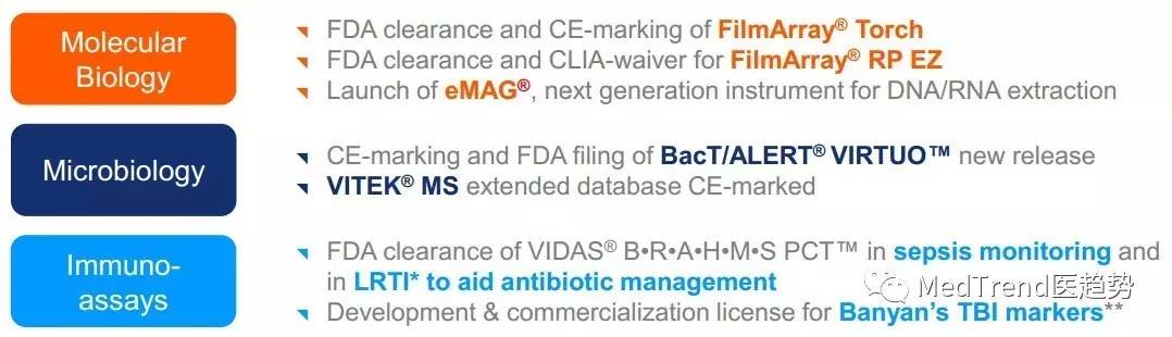 主要是2014年在这个市场上取得重大战略举措收购Biofire分子诊断公司,推出FilmArray®系统,设定了新的传染病的诊断标杆。